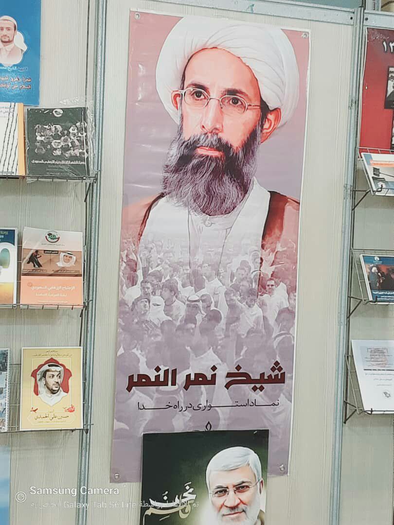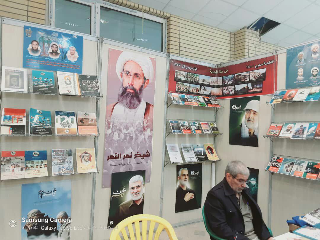 وبينما تقف صورة الشهيد "نمر باقر النمر" عملاقة في الجناح، تستقبل لوحات من سبقه من الشهداء "علي المديفع"، "جلال شلي"، "نزيه الحجاج" و "محمد الشواف" رواد المعرض، كما يتصفح آخرون كتبها التي تنوعت بين ثقافية، سياسية ودينية لتحوز إعجاب أذواق الجميع.